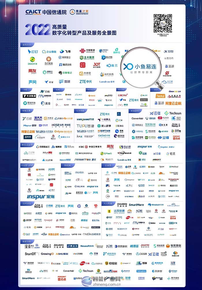 近期,在中國信通院主辦的“高質量數字化轉型創新發展大會暨中國信通院‘鑄基計劃’年度峰會”上,中國信通院展示了數字化轉型領域的工作成果,同時正式發布首批《高質量數字化轉型產品及服務全景圖(2022)》。小魚易連憑借“高安全·超融合·全連接”云視頻在數字化轉型中的高質量應用,入選通用辦公類名錄,成為權威單位認可并推薦的品牌。
